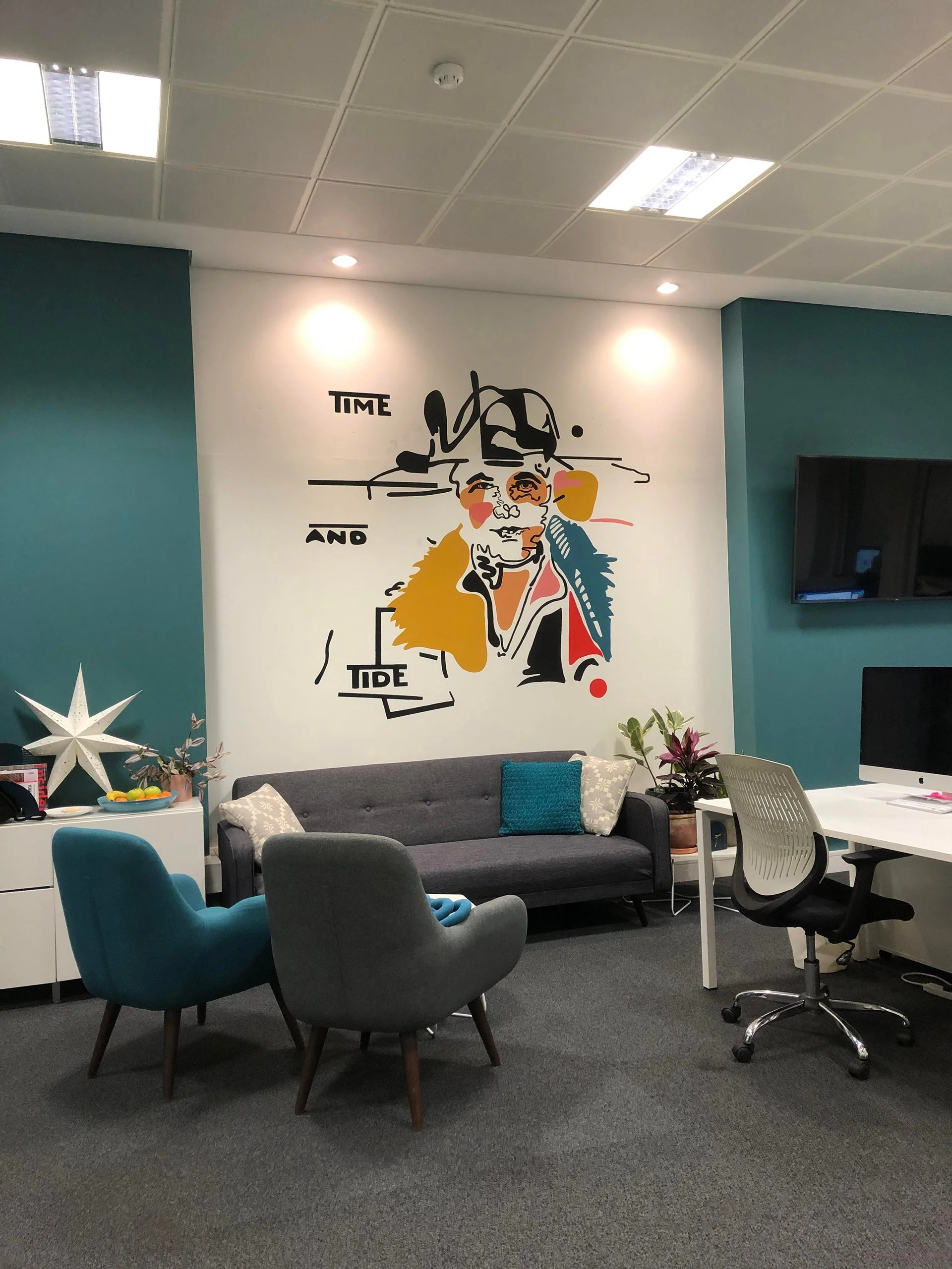 The primary objective was to create a mural that authentically represented the local area. It’s important to highlight that the office space chosen for Deryn Consulting is a political business led by remarkable women, it presented a fitting opportunity to celebrate both parties simultaneously.