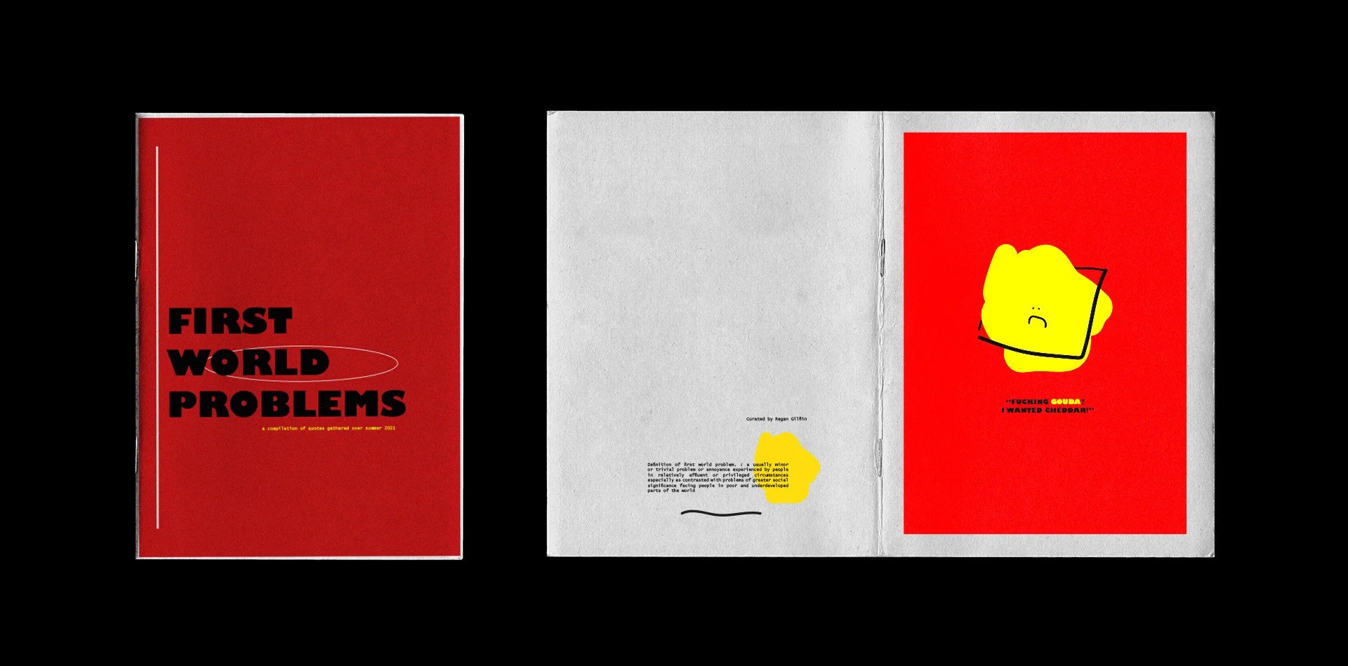The First World Problems zine, is a light-hearted publication, I aimed to remind and inspire others to maintain a sense of humility amidst the luxuries and privileges we often take for granted.